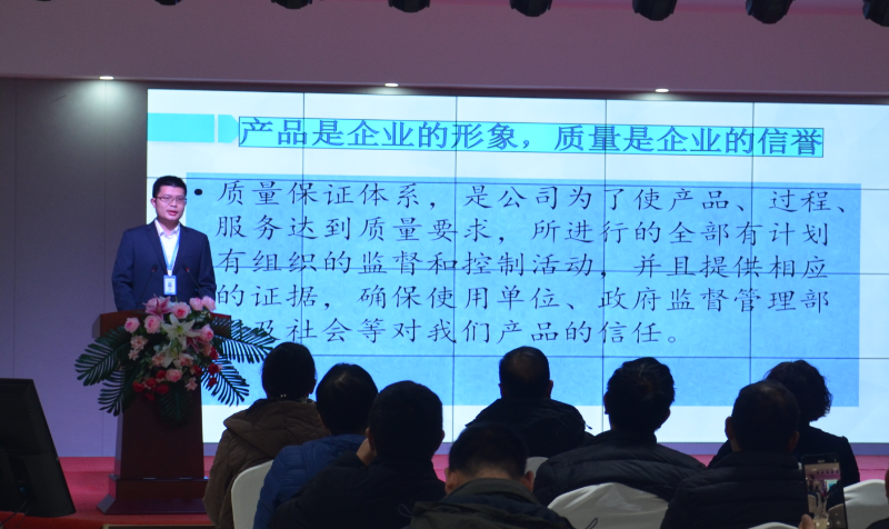 随后,考察团一行来到办公楼6楼多功能厅进行座谈,张总代表杜尔集团公司全体员工对考察团的到来表示热烈的欢迎,并发表讲话,张总表示:“天相近,人相依,情相通”杜尔希望与来访的各企业,朋友们进一步增强交流,紧密合作,营造良好商机,共谋发展之路,共创美好未来。随后考察团逐一观看了公司企业宣传片、杜尔二期智能车间动画视频,质检部、技术部负责人对我公司质量管理体系及产品做了更为详细的介绍,公司副总经理刘国锋向考察团详细介绍了杜尔成立至今的发展情况,使考察团对杜尔及杜尔今后的发展方向有了更深层次的了解。产品是企业的形象,质量是企业的信誉,这是我们每个杜尔人,深藏在心的座右铭。